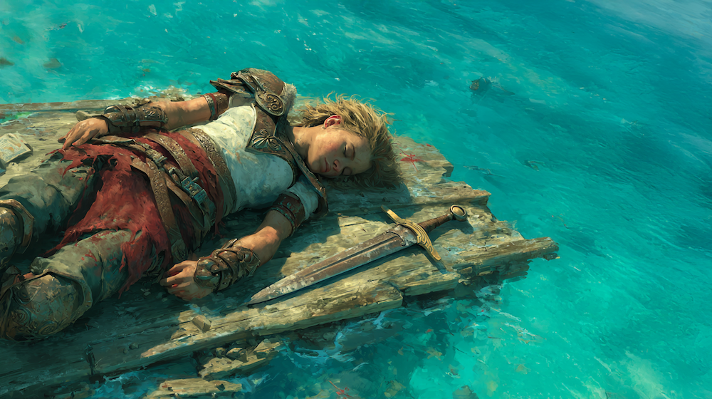 Suddenly, a sea monster rose up from the sea and attacked her ship. Kayla drew her sword and tried her best to fight the monster. However, the monster struck Kayla on the head with one of its tentacles, knocking her unconscious.